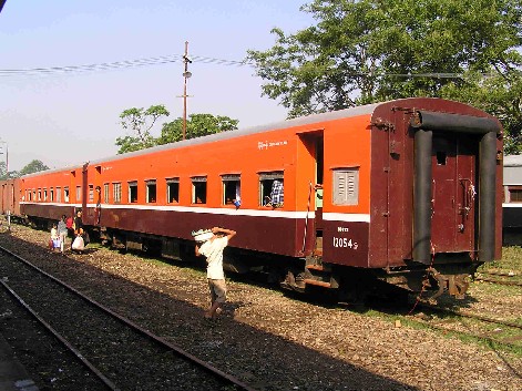 After what seemed like an eternity we were finally on the move but not for long. First we broke down, twice, and then there were the station stops. At every stop vendors materialised as if out of thin air and food and money were exchanged, out the windows. |