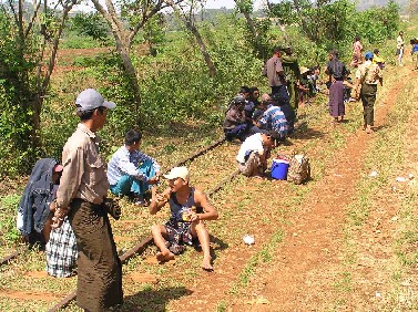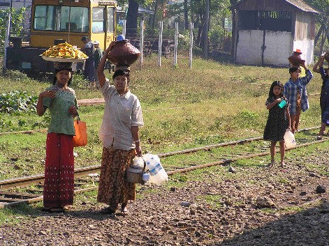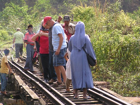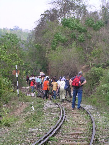 We waited, and we waited but nothing happened. Kerry, one of our party, decided to investigate and what a discovery he made. As the points were changed, something went dreadfully wrong. The engine jumped the track leaving most of its wheels on the ground. That was that as far as the train was concerned. It would not go anywhere for many, many hours and nor would the train that had wanted to pass. A large, heavy duty crane was needed and from where it would come was anyone's guess. In the meantime our million dollar question was :"What are we going to do"? Eventually it was decided that we should walk to the next station, just before the Gokteik Bridge. And that was the beginning of an odyssey I could have done without. At the station we discovered our options were just about non-existent: