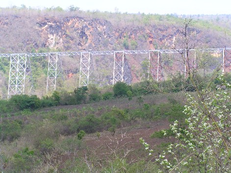 Finally, and at long last we completed Stage 1. Stage 2 couldn't possibly be as bad. Walking along a railway line wasn't that difficult, easier than walking uphill. Maybe so, but ... ! Over time the party spread out with my party bringing up the rear. Margaret was way ahead, supported on both sides and with her feet barely touching the ground. It wasn't long before we could no longer see the rest of the party, we were alone except for the local man who kept an eye on us and was always there when I needed help to cross a viaduct or just a helping hand. He'd help me and then walk ahead, squat down and watch. When I got close, he'd stand and take up a position further along the track.